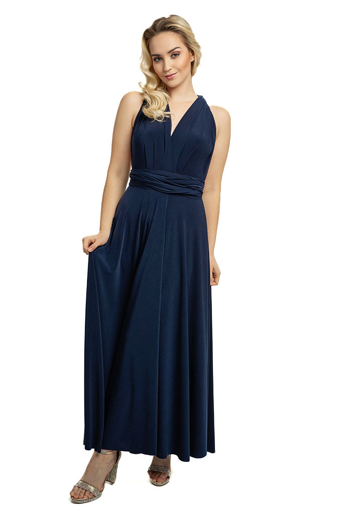 Ez a sötétkék basic infinity ruha tökéletes választás koszorúslányoknak, alkalmi megjelenéshez vagy nyári eseményekhez. Egy méretben kapható, rugalmas derékrésszel és hosszú megkötőpántokkal – így akár 15 különféle stílusban viselhető!