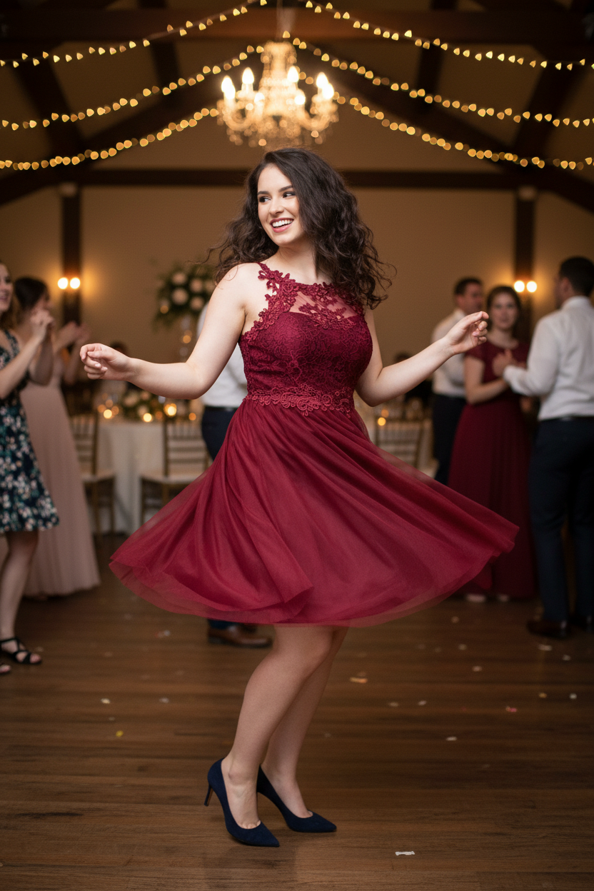 A bordó menyecskeruha remekül mutat arany ékszerekkel, nude vagy fekete cipővel. Egy bordó rúzs vagy körömlakk pedig igazán harmonikus megjelenést teremt.