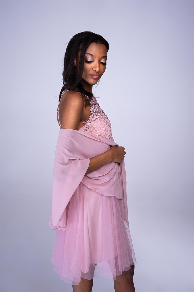 Alkalmi muszlin stóla mályva színben. A vállakon lágyan leomolva minden szettet különlegessé és elegánssá tesz.