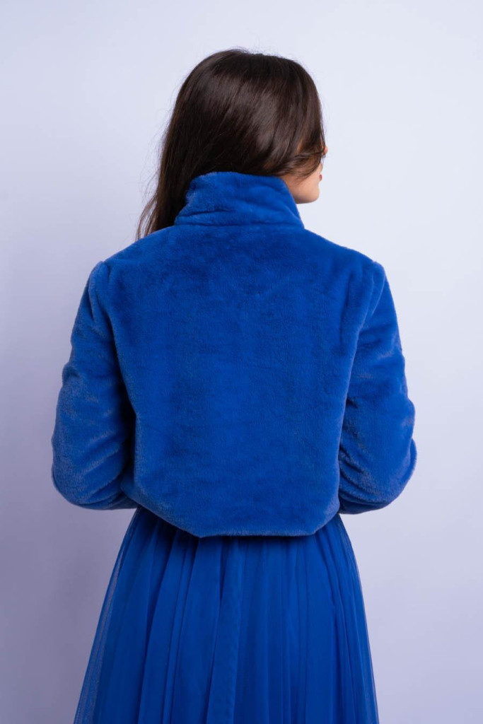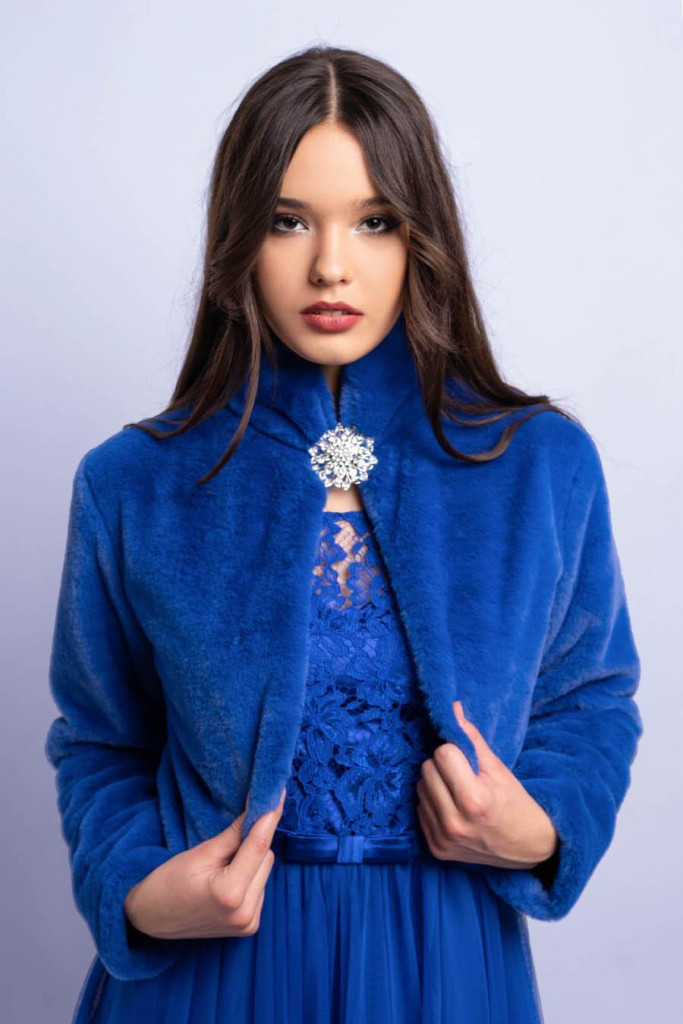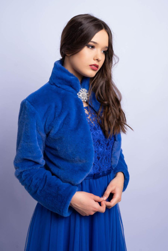 Az eleganciáról akkor sem kell lemondanod ha hűvösre fordul az idő! Egy alkalmi plüss anyagú szőrme bunda boleró minden szetthez csodásan passzol egy őszi, téli esküvőre akár a koszorúslányoknak is. Az ezüstösen csillogó köves bross kitűző ajándékba jár hozzá, de tetszés szerint kicserélheted, vagy hordhatod anélkül is.